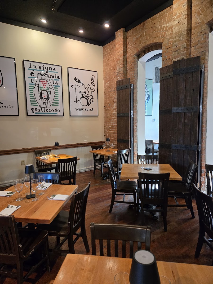 We came here before going to a show at Gammage Auditorium. This must be a frequent stop for people on their way to Gammage, because as soon as we entered and got seated, the server asked if we were headed to a show there. We said yes, and she promised to get us out in time. Caffe Boa has a great atmosphere with lots of dark wood and exposed brick. We sat in the little sunroom separated from the dining room with our doorways. It's brighter in there. There's a separate bar and a glassed off room for more private dining. One of the best things about this place is the great art posters, all having to do with wine. The food here is fantastic. Hubby had the spaghetti and meatballs. The meatballs were delicious, although I admit I love all meatballs. I did like the red sauce, which I can be a little picky about, and would definitely order anything with the red sauce. I had the steak salad, which was very large. It was dressed greens with sliced steak on the side, and I could hardly finish it. I did, because it was soooo good, but I left feeling stuffed. Caffe Boa is a really great place in general, but especially Great for a pre-event dinner in Tempe.